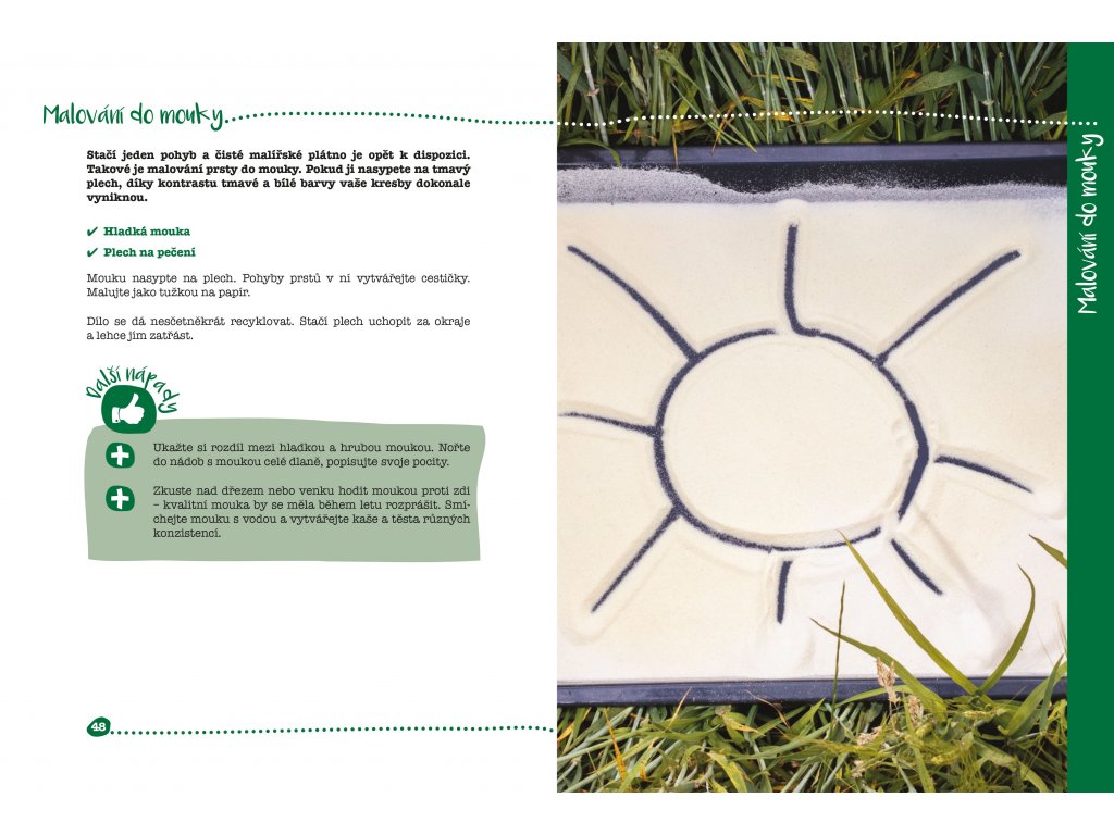 Kniha plná nápadů na aktivity s dětmi od 1 do 5 let doma i venku, s pomůckami a materiály, které obvykle máme k dispozici a nepotřebujeme pro ně běžet do obchodu. Mnohdy potřebujeme své dítko zastavit a něčím zabavit. Aby nepadalo, nematlalo, nepolykalo divné předměty. Neutíkalo a neječelo. Proto musí být rodič neustále připraven k akci a mít po ruce tento zásobník 50 odzkoušených aktivit, které může začít dělat v podstatě ihned.